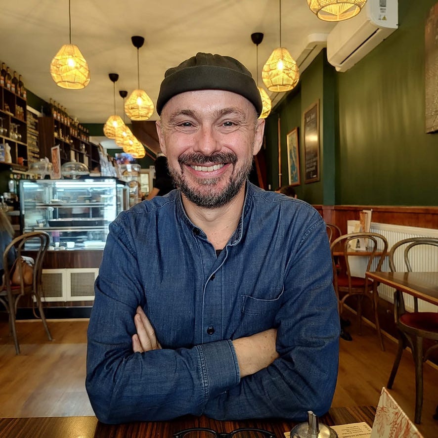 This is me, in the very excellent Roma Café in Leicester, UK (they have very good minestrone).